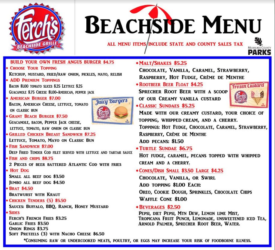 Ferch's Beachside Menu